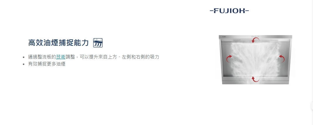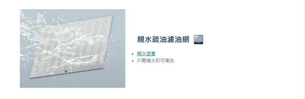 擁有日本塗層的親水疏油濾油網,使您輕鬆清潔無負擔。 獨特整流板設計,有效防止油煙外溢。 優異排油煙能力,打造清新空氣,提升生活品質,讓您享受更美好的生活。