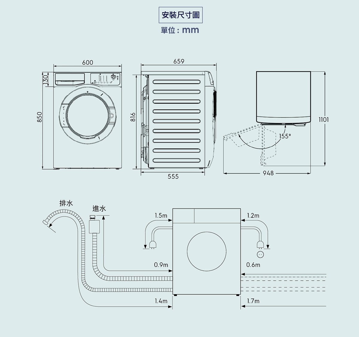 - 產品尺寸-高(mm)850