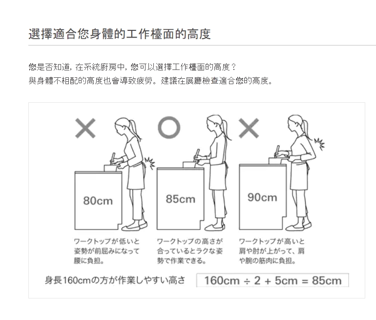 在廚房料理經常遇到的問題,洗碗洗到腰痠,還是炒菜炒到手痠,這些都可能是沒有選擇適合您的工作檯面高度
