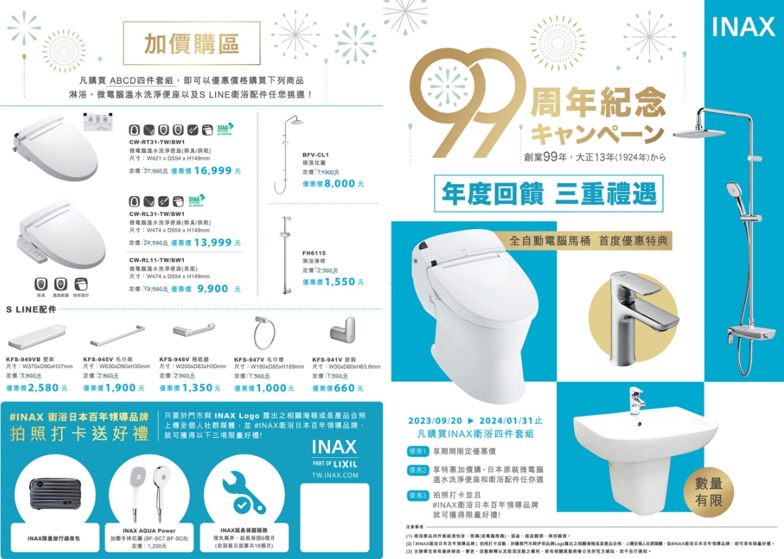 2023 INAX 99周年紀念促銷活動