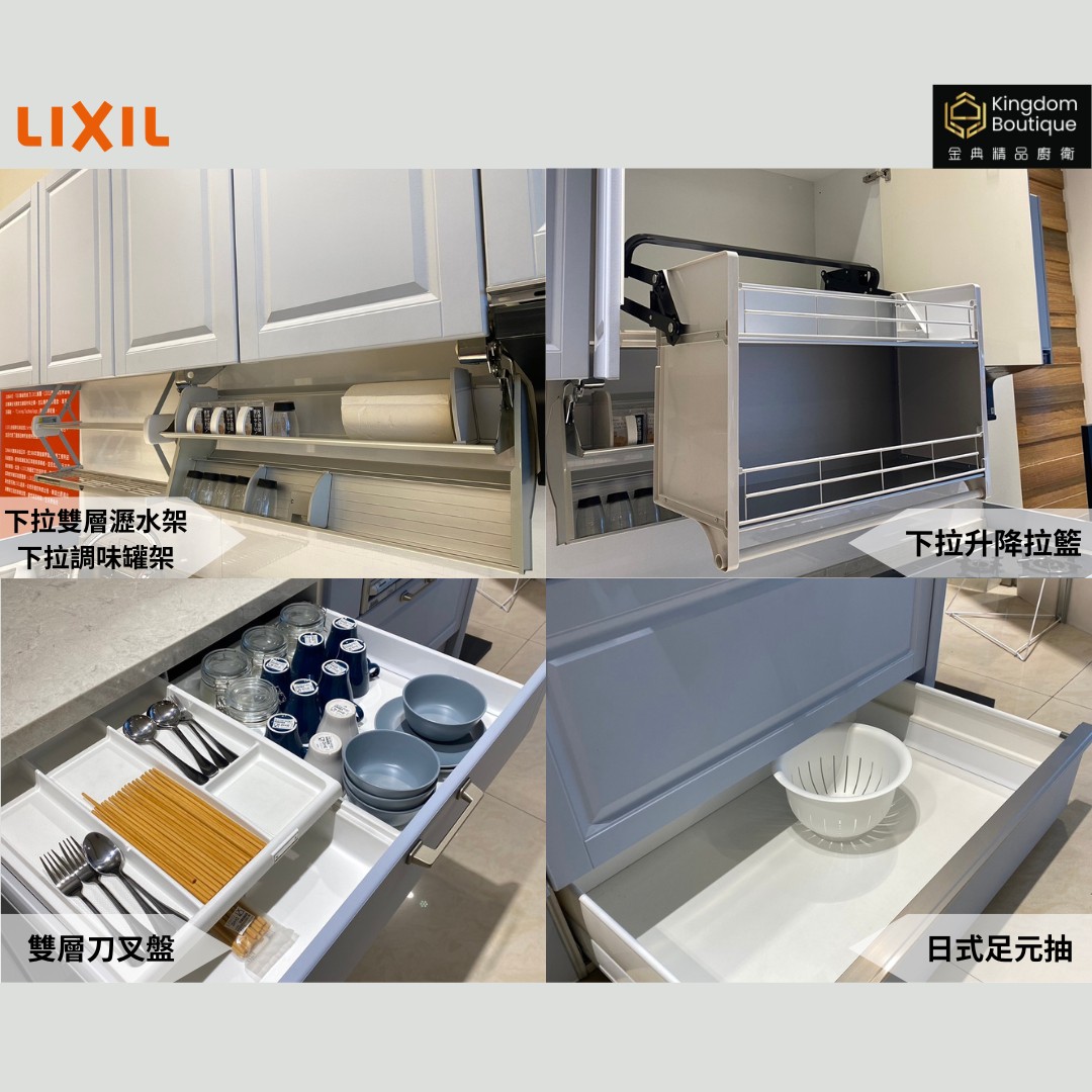 ※ 下拉式雙層瀝水架 + 下拉式調味罐架