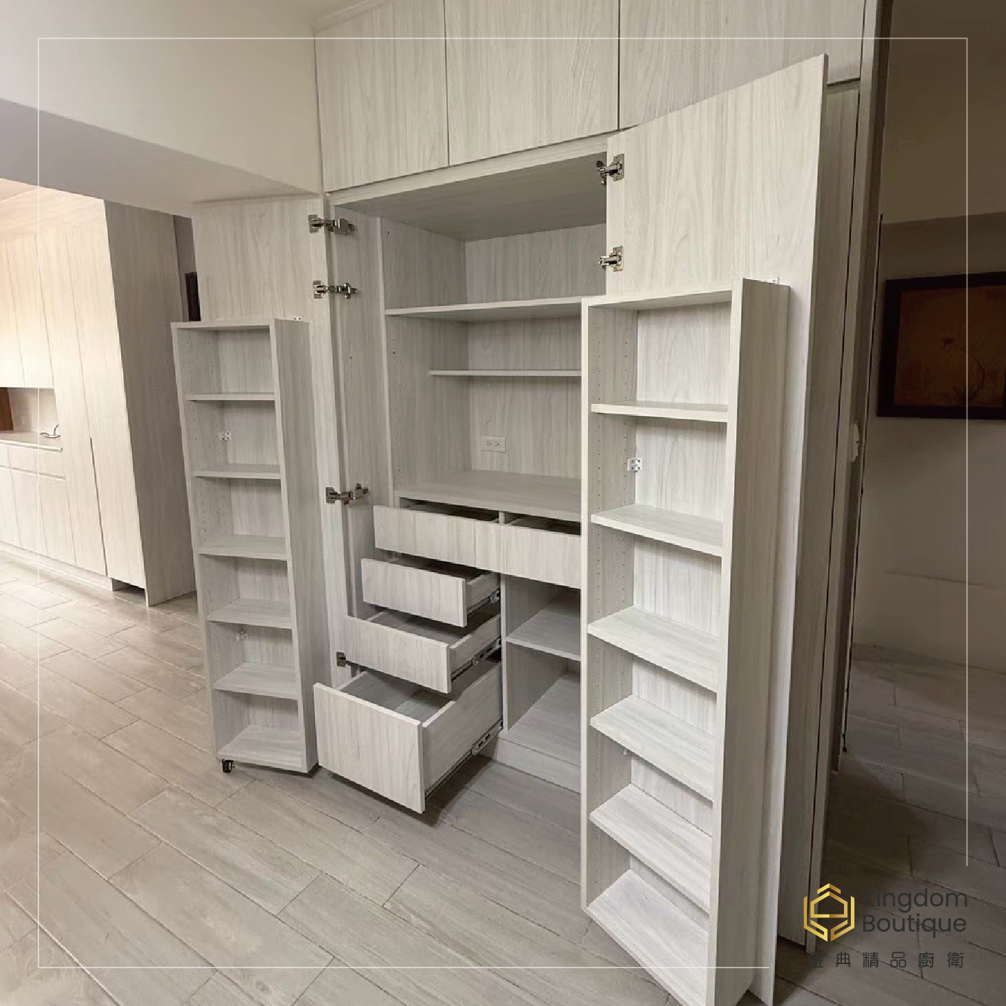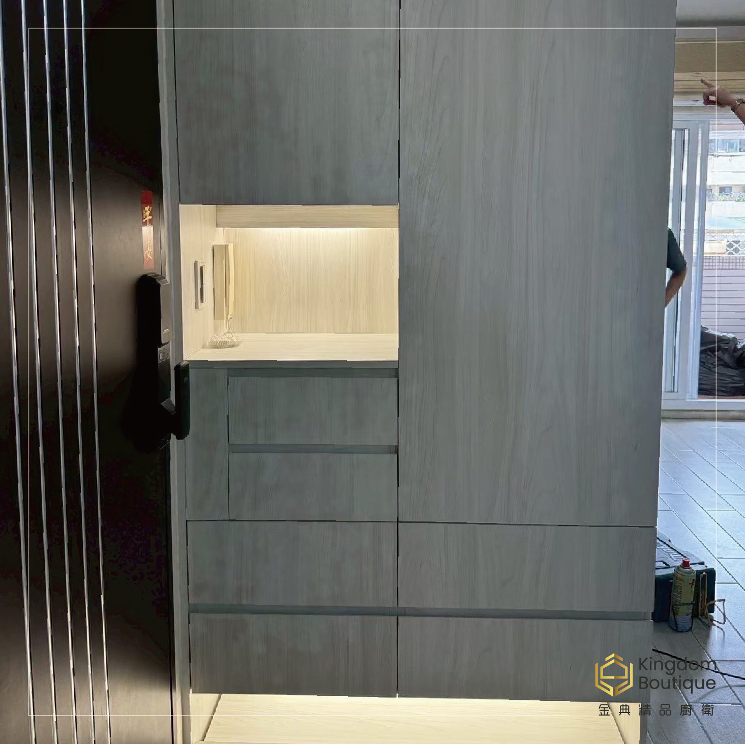 客製化系統櫃 實體案例分享 kingdom-made System Furniture 系列 打造玄關/客廳優化收納空間 , 質感再升級!! 也想要這套系統櫃來到你家嗎 說出你的需求!馬上行動 立即加入官方LINE ID : @713ztmli /開始線上諮詢 或到實體門市參觀詢問 , 皆有門市人員為您服務 (07)-55567189 店址 : 高雄市左營區自由二路221號.金典廚衛精品館