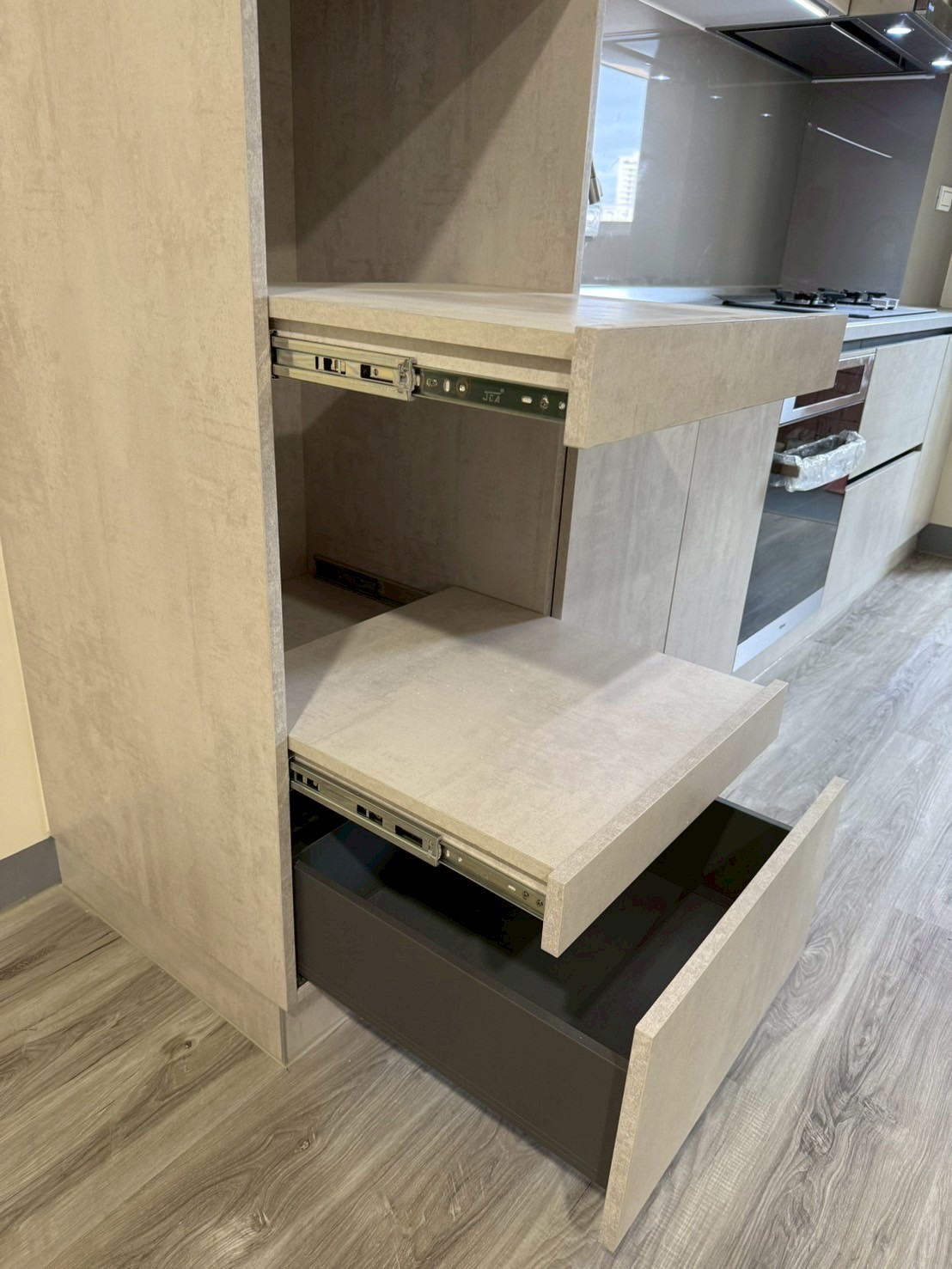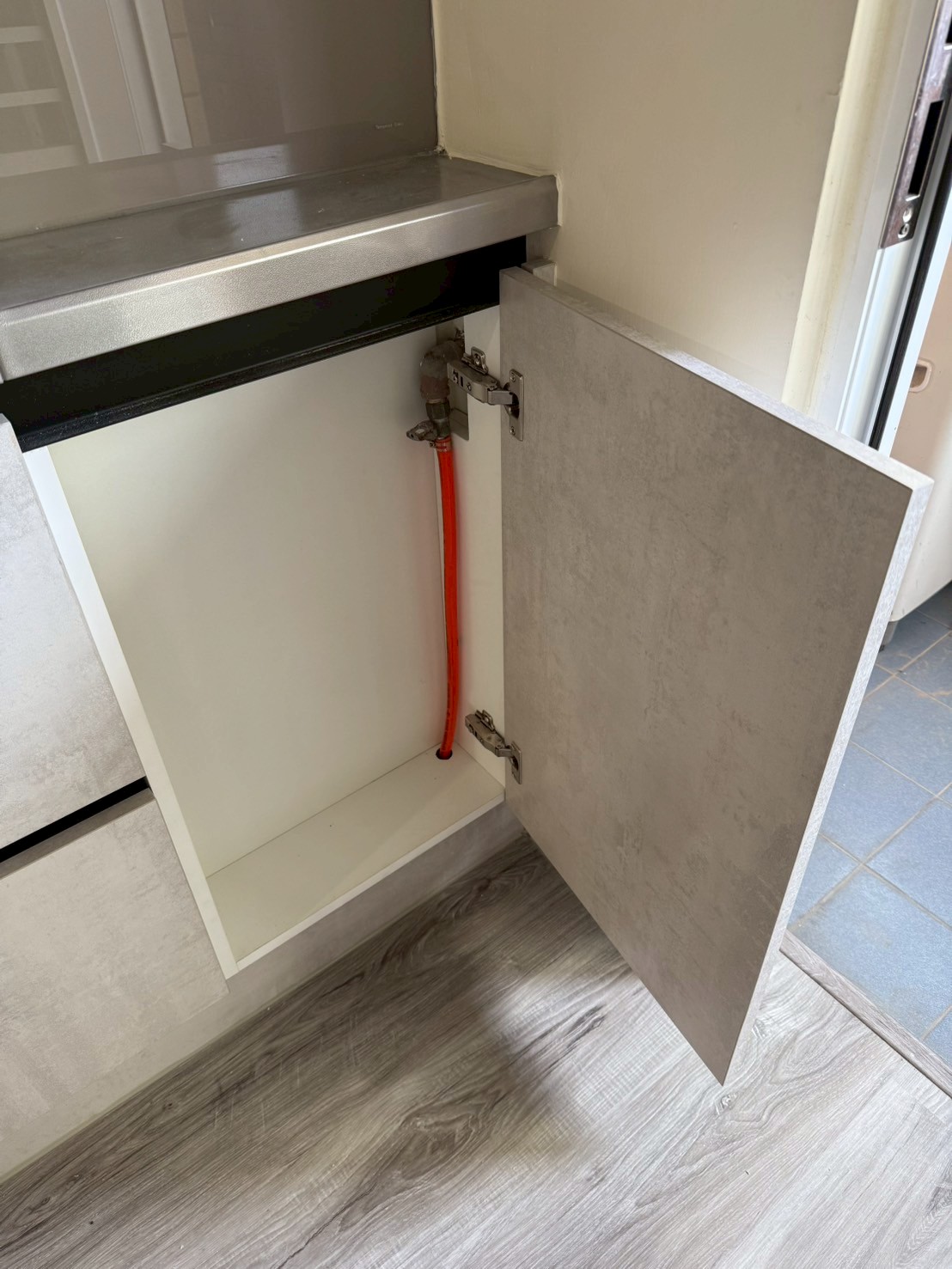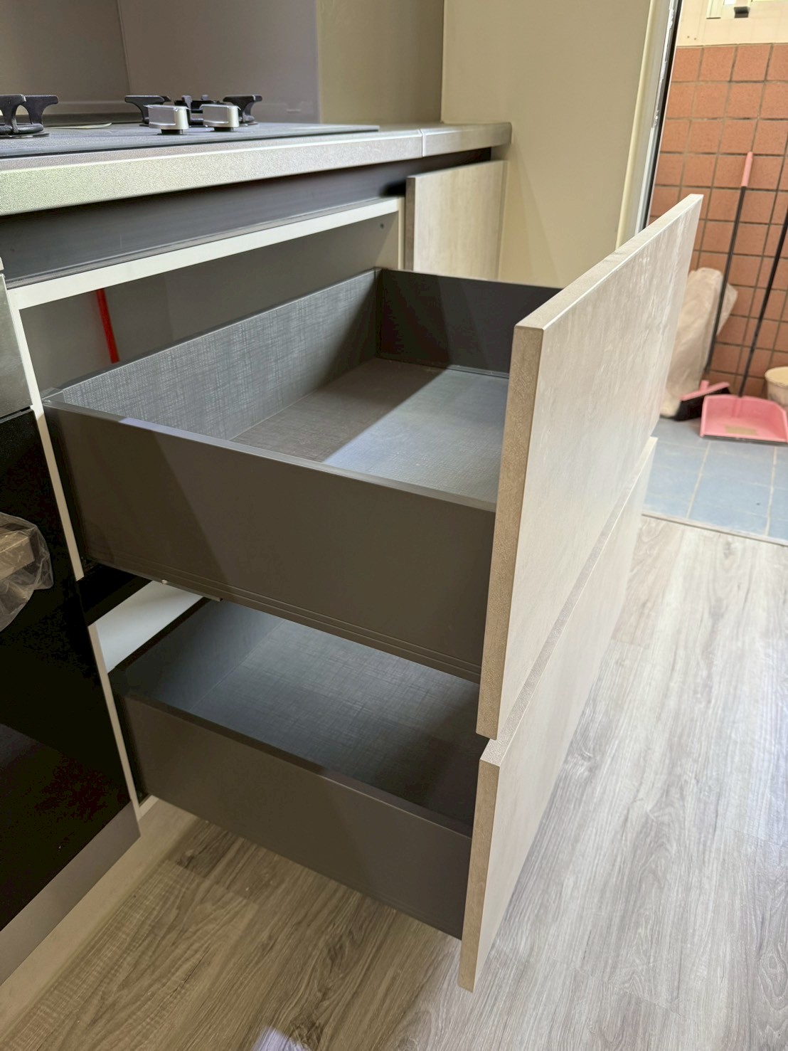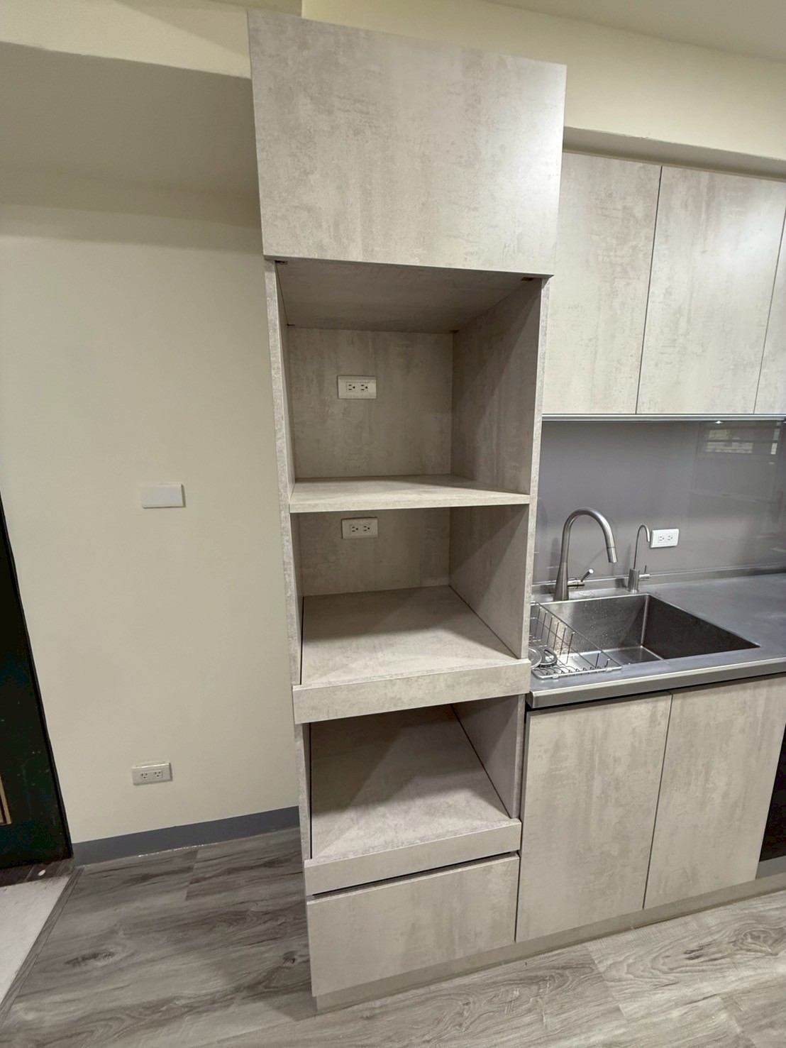 仿清水模風格門片、清冷色調讓我的廚房好清又舒適,每次看到廚房都是好心情