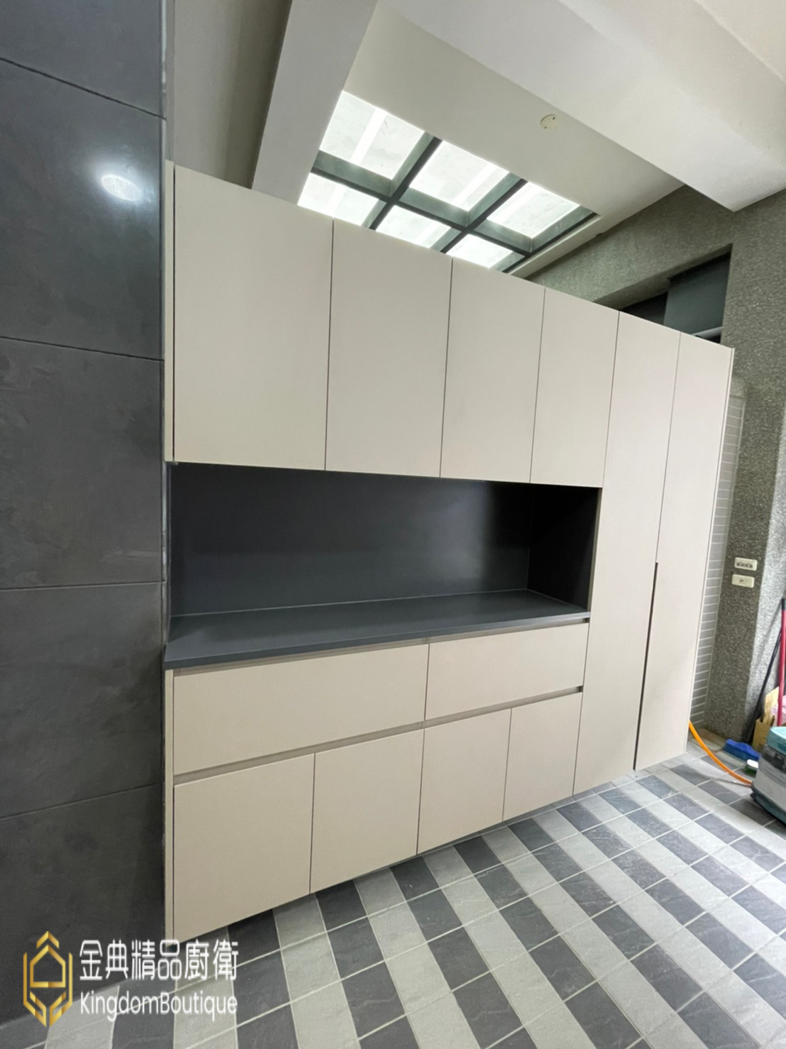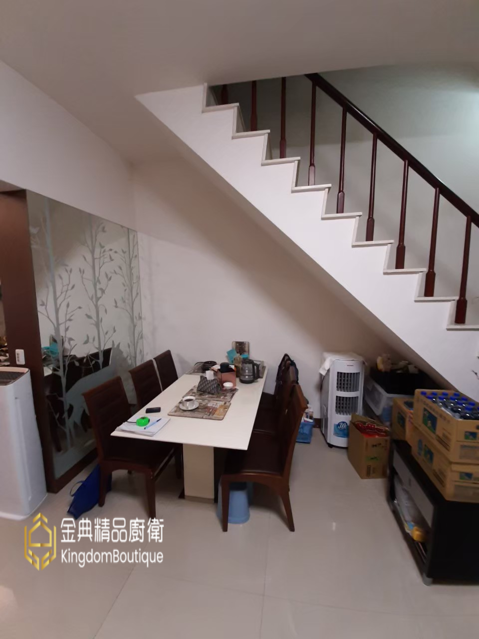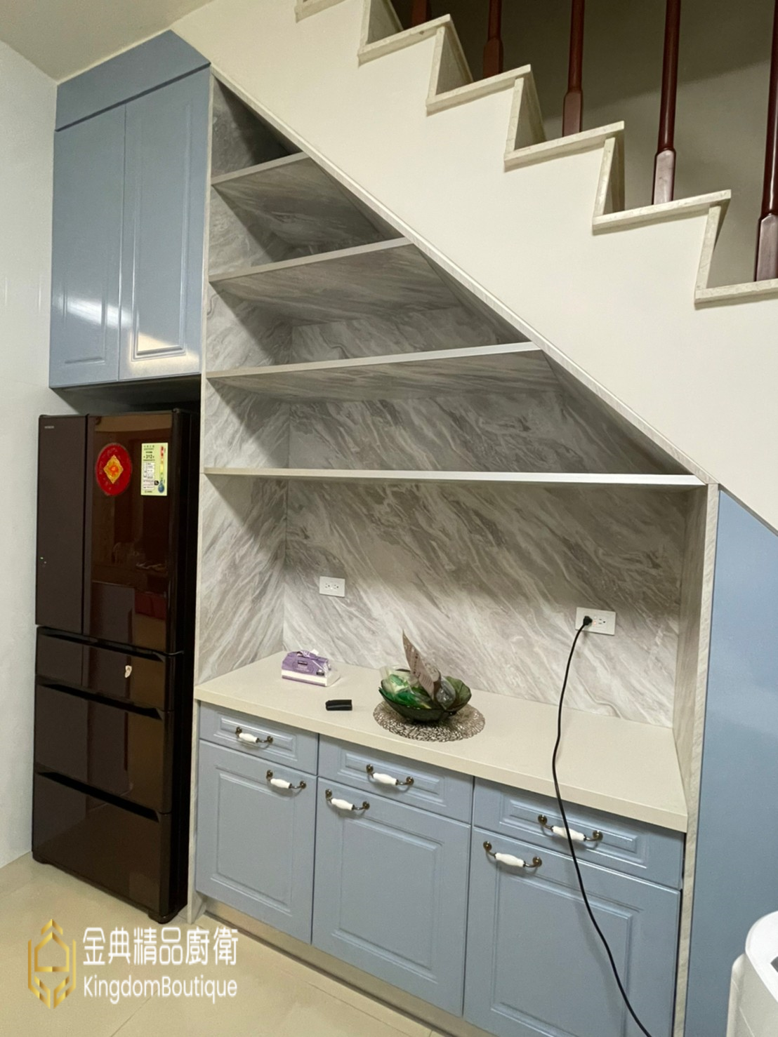 •   樓梯下方收納櫃:餐邊櫃、冰箱吊櫃、愷薩金石石英檯面